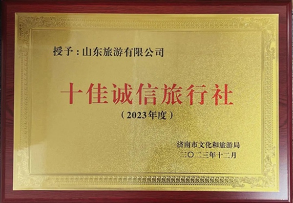 旅游公司?荣获2023年度济南市“十佳诚信旅行社”荣誉称号
