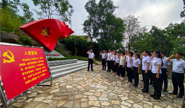 在天蒙景区宣誓广场,景区集团纪委书记刘云涛带领党员代表重温入党誓词,“我志愿加入中国共产党,拥护党的纲领,遵守党的章程......”,嘹亮的宣誓声响彻天蒙景区,强烈震撼着在场的每一位党员,进一步坚定了理想信念,激发了赤诚的爱国之情。