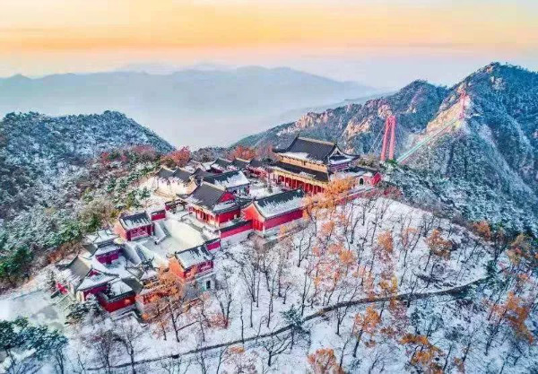 浪漫的初雪将景区打扮的银装素裹,尽显北国风光。绿树,红豆、黄叶、红枫,相映成趣,大地皑皑,远处山峰轻披薄薄银装,就像一幅水墨丹青画。