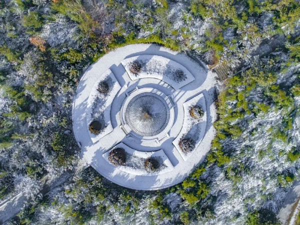 远山上玉树琼枝,红墙黛瓦穿插其中。雪后的新甫山景色厚重而美丽,雪韵禅意,一场落雪不仅惊艳了冬日时光,也让观音院这佛门圣地更显庄严肃穆、空灵清幽。在这美丽的雪景下,新甫山的观音祈福文化节也在进行中。在赏雪景同时为身边的人祈福不乏是件浪漫的事情。