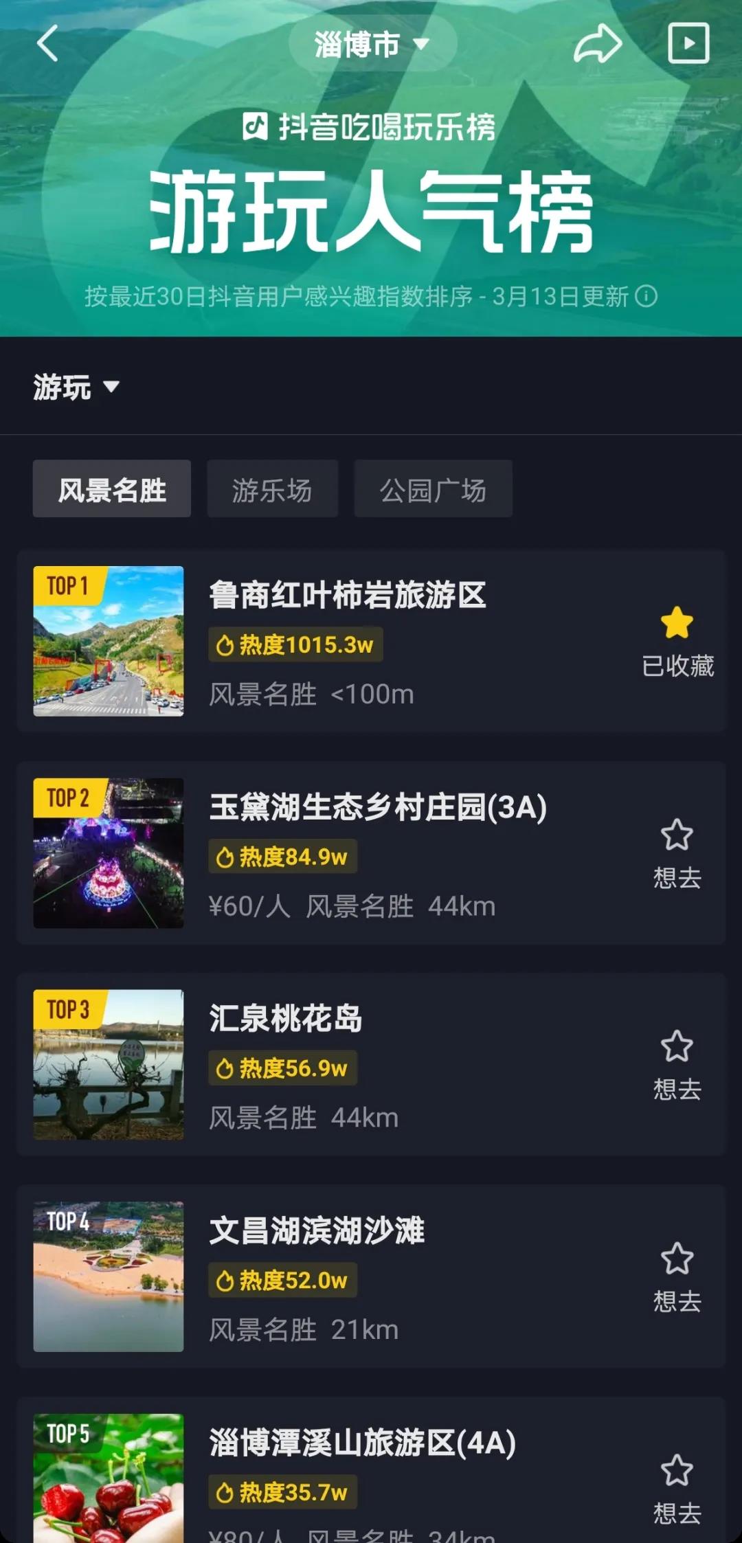 与此同时,红叶柿岩旅游区在抖音平台“淄博市风景名胜热门榜”上排名第一,妥妥地站上了c位!景区更是位列“华东地区抖音旅行榜”第四名!多段视频火爆刷屏,成为山东省抖音平台上关注度最高的话题之一。