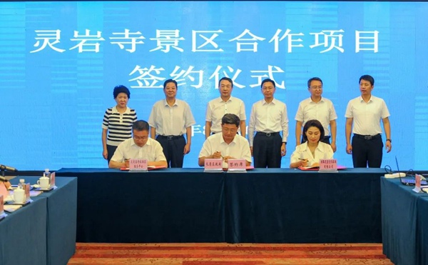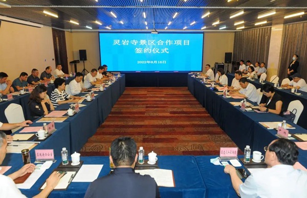 8月16日,灵岩寺景区合作项目签约仪式在济南举行,山东文旅集团党委书记、董事长高洪雷,济南市委常委、宣传部长戴龙成,济南市文旅局党组书记、局长郅良,长清区委书记肖辉等出席签约仪式,会议由长清区区长王士强主持。