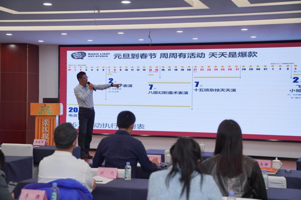 发布会上,山东文旅景区投资集团同步宣发了各景区2023新春系列营销活动。乘着旅游复苏的东风,各景区将线上线下相结合,捧出丰盛的“文旅大餐”。通过一系列可玩、可看、可乐、可体验、可消费的特色活动,营造喜庆、祥和、积极向上的新春氛围,提升广大游客的体验感、获得感,拉动文化旅游消费的增长。其中包含2023天蒙山新春民俗祈福游园会、新甫山祈?;ǖ朴危寺┘尽⒁噬骄劬抻懈4航诿砘?、NICE兔MEET YOU 2023石门坊兔年新春游园会、“梦回大明朝 浸享中国年”老龙湾春节活动、红叶柿岩山野冰雪奇妙游、灵岩寺景区的以“好客山东贺年会·瑞兔迎春”为主题的沉浸式花灯祈福灯会以及聊城水上古城景区的“年味最东昌·地道中国年——2023瑞兔迎春新春嘉年华”活动等。届时各景区还将开展门票折扣减免、门票转发集赞送礼物等系列优惠措施,欢迎游客携亲朋好友前来感受欢聚氛围。