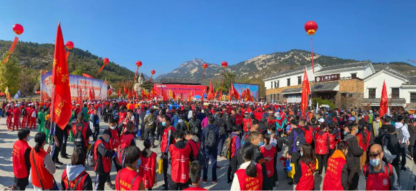 10月25日上午, 2020徒步齐鲁之重阳徒步登高(天蒙山站)活动在山东费县鲁商·沂蒙山银座天蒙旅游区盛大开幕!活动吸引了全国各地的近万名徒步爱好者及游客参与,在强身健体的同时,高唱沂蒙山小调,感受沂蒙精神,欣赏沂蒙山好风光。